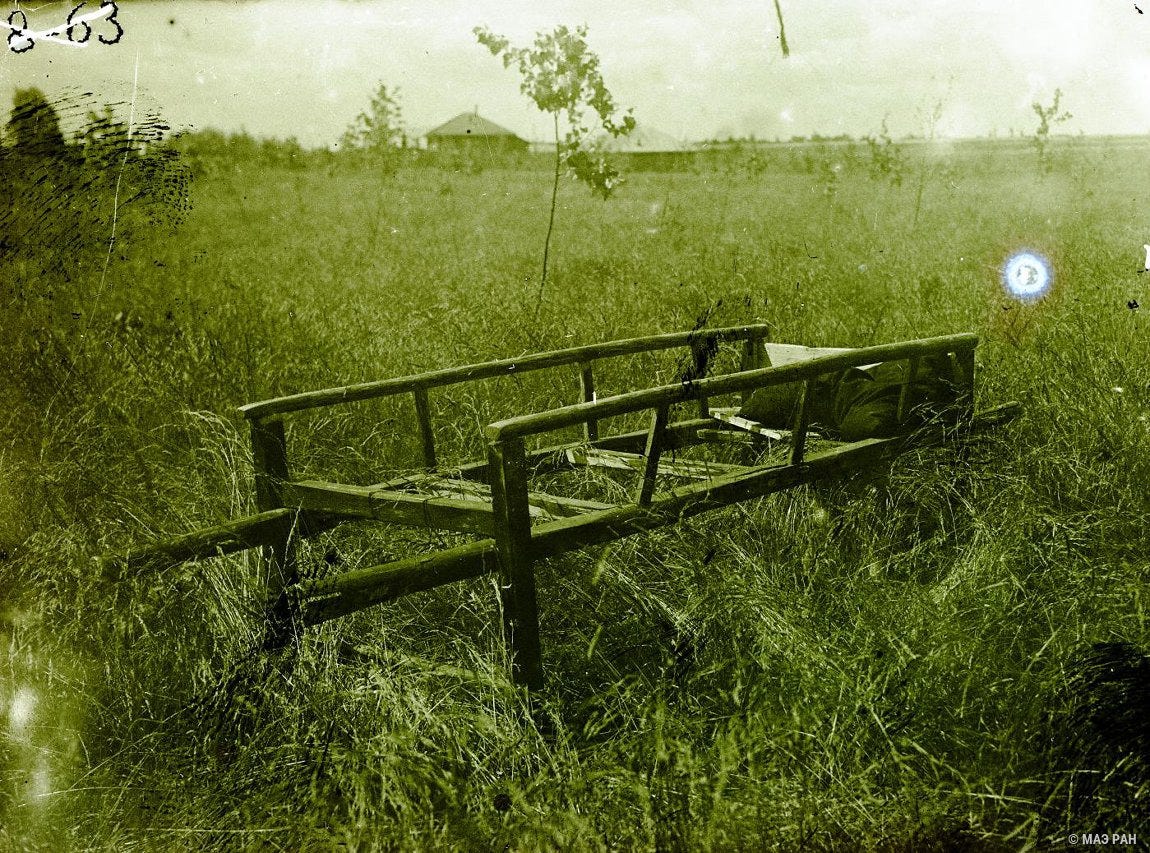 Because this is a double-exposed shot, you can see Shoychet Revzin and his Shechita post in the background.